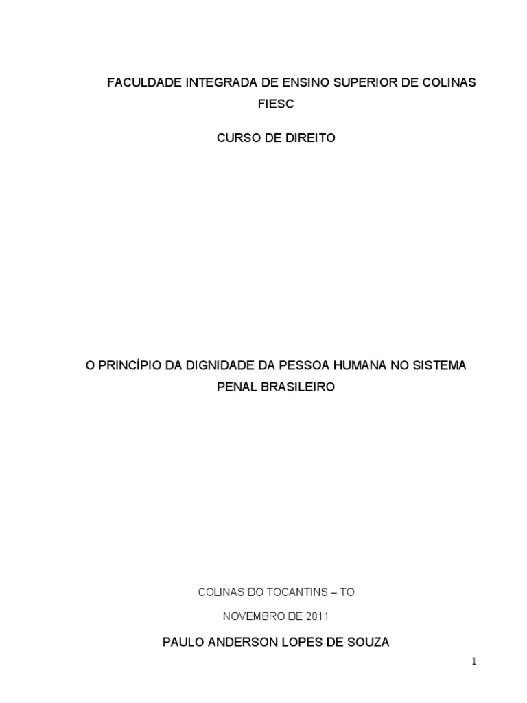 Pre Projeto De Tcc Principio Da Dignade Humana Lei Criminal