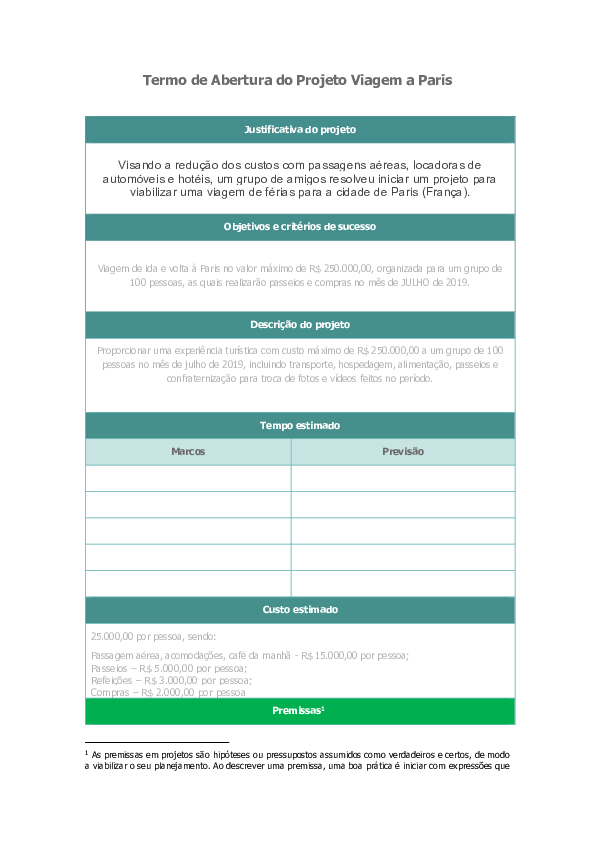 Pdf Termo De Abertura Do Projeto Viagem A Paris Mundo Da