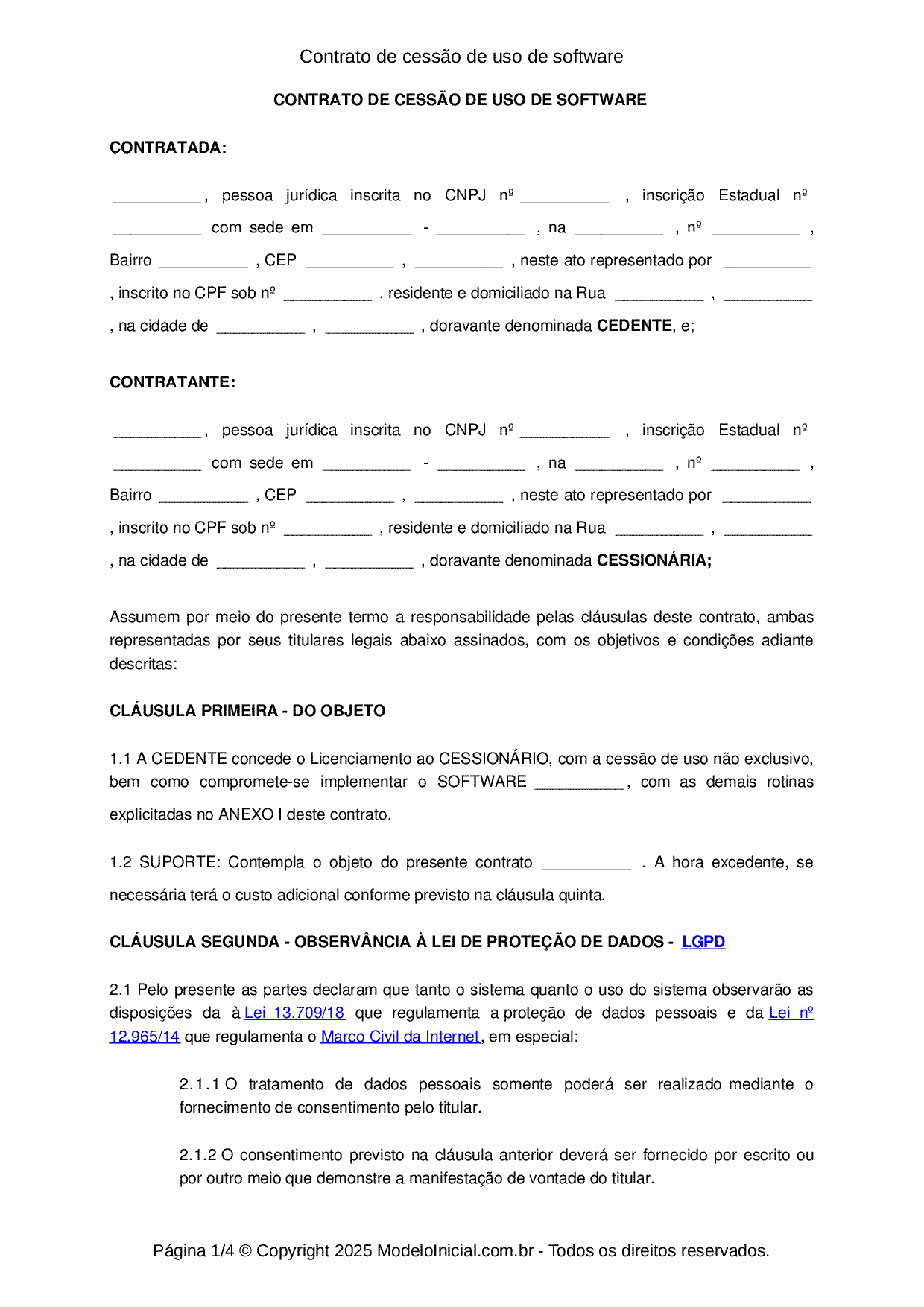 Modelo Contrato De Cessao De Uso De Software