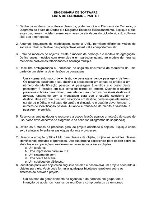 Engenharia De Software Lista De Exercicio A Parte Ii 1