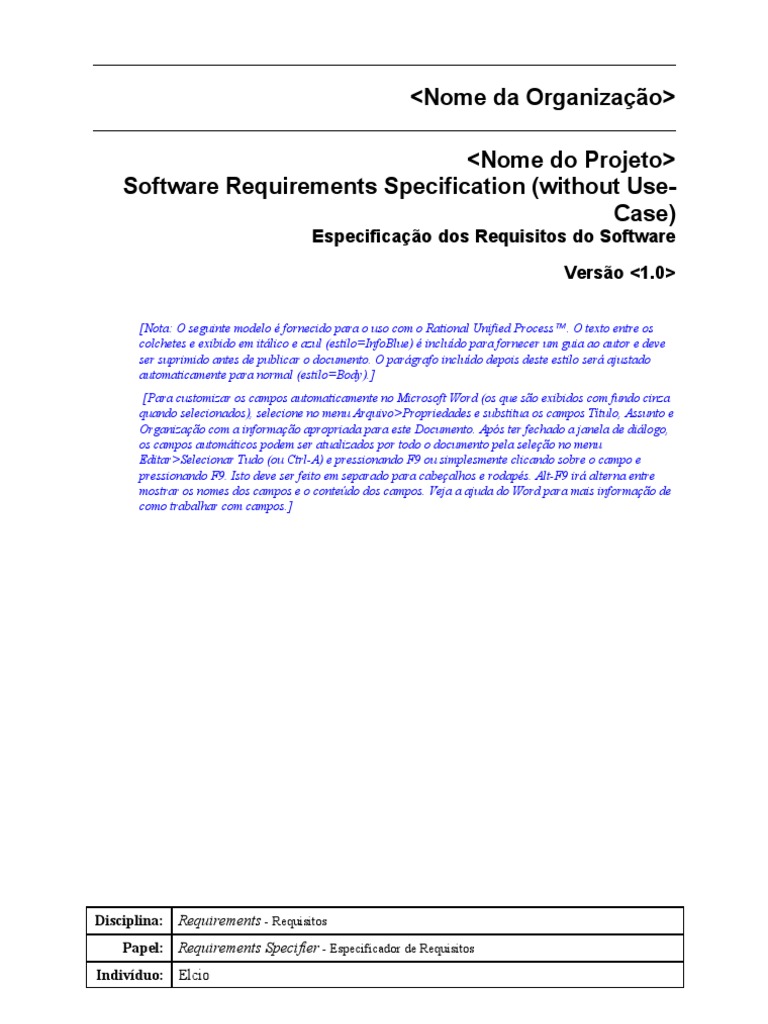Modelo Documento De Especificacao De Requisitos Templates