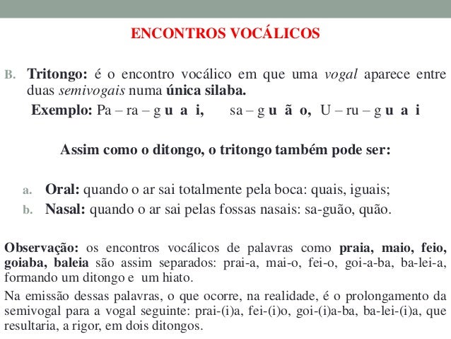 Encontros Vocalicos Ditongo Tritongo E Hiato Basico Prof