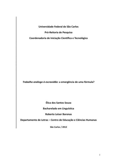 Projeto De Pesquisa Trabalho Analogo A Escravidao