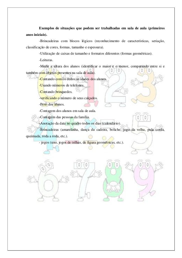 Os professores podem fazer isso por exemplo os alunos identificam a presença dos números no dia a dia reconhecendo sua utilidade.