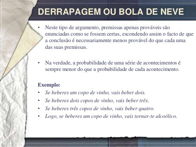 Dados completos sobre Falácia Da Bola De Neve Exemplo.