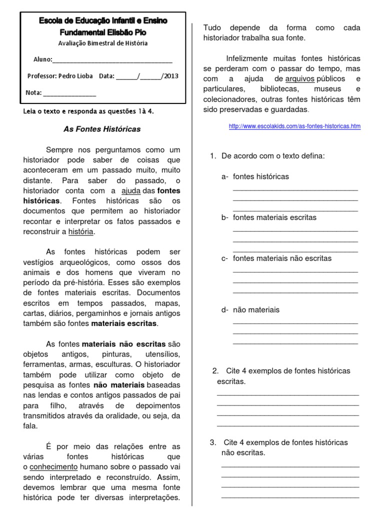 Cite Exemplos De Fontes Historicas Escritas Nao Escritas
