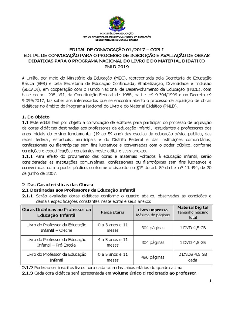 A partir desta quinta feira 23 inicia se o processo de escolha das obras didáticas que serão utilizadas em 2019 pelas escolas públicas da educação infantil e dos anos iniciais do ensino fundamental 1º ao 5º ano fornecidos pelo programa nacional do livro e material didático pnld executado pelo ministério da educação representado pela secretaria de educação básica seb.