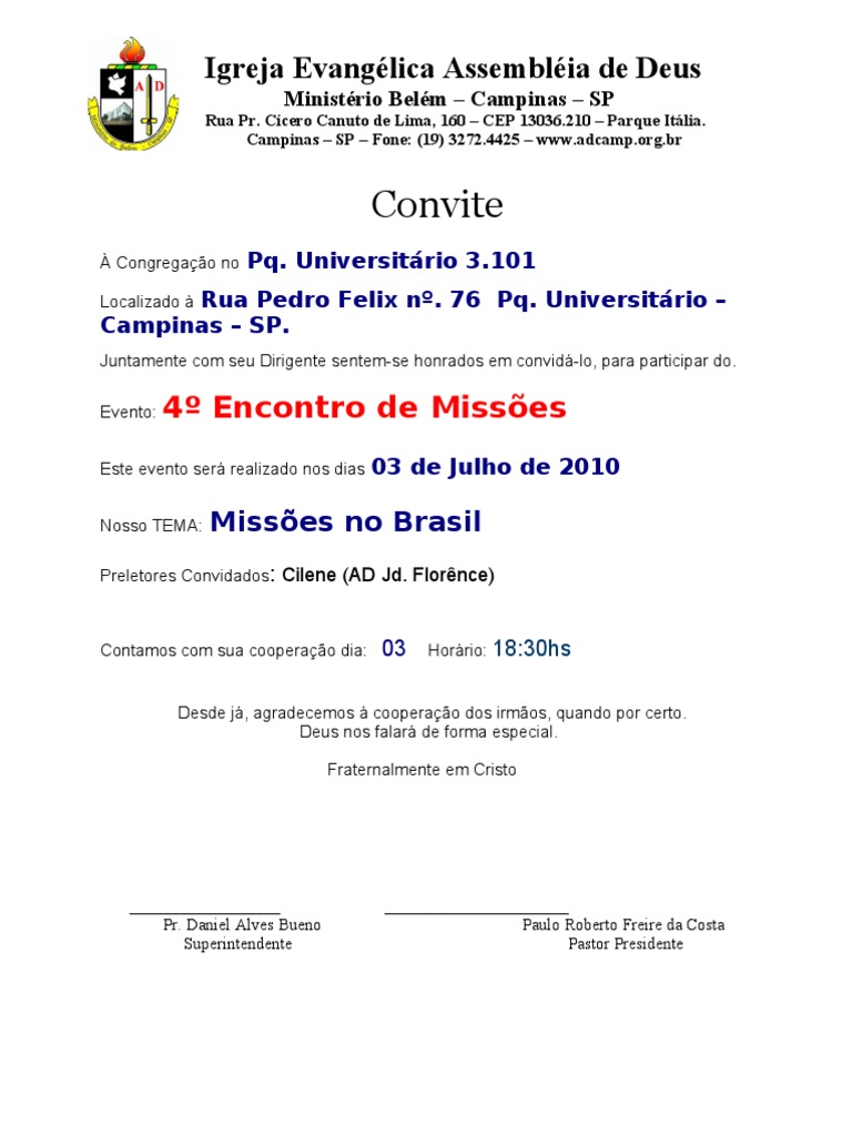 Detalhes de artigos relacionados Exemplo De Carta Convite Para Evento.
