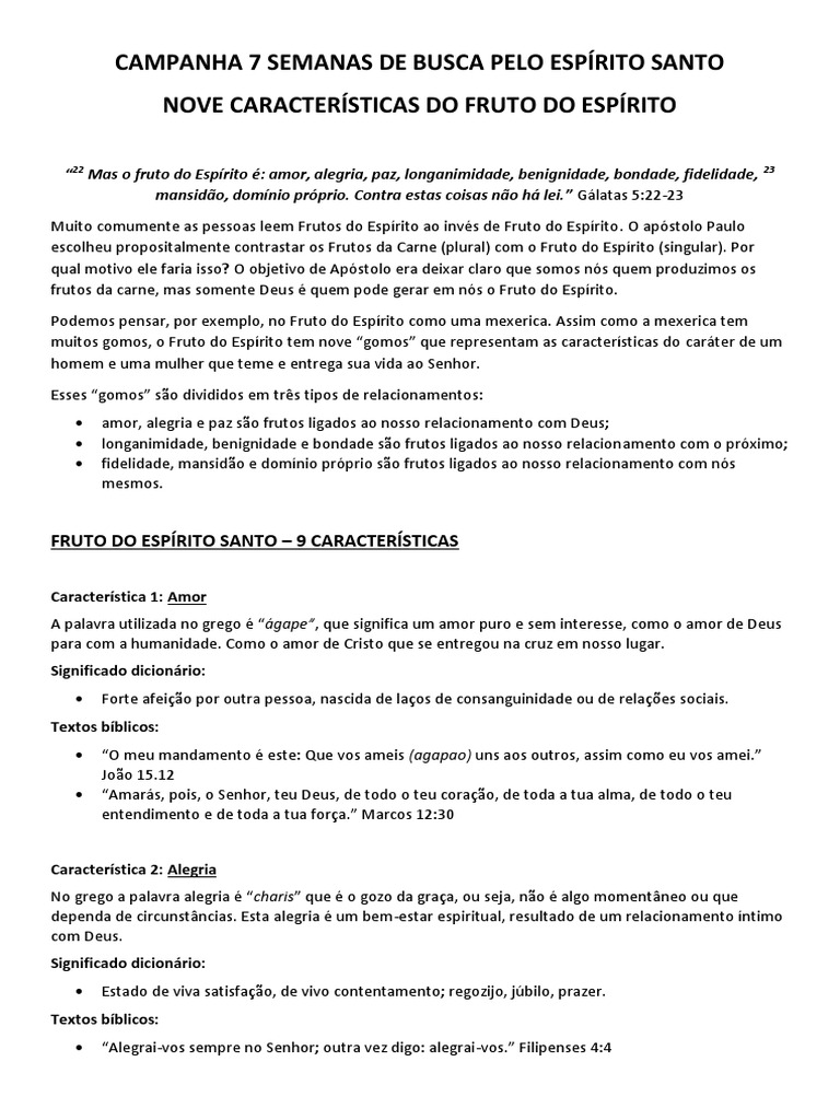 Significado Das Caracteristicas Do Fruto Do Espirito Fe Espirito