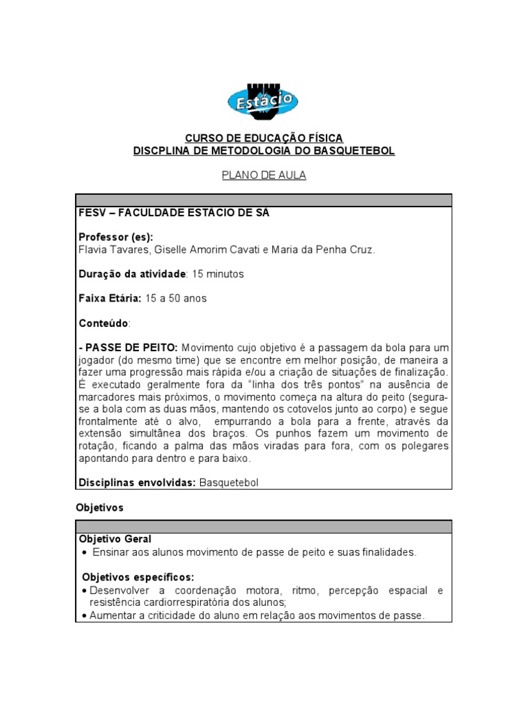 56017883 Modelo Plano De Aula Basquete Esportes Escolas