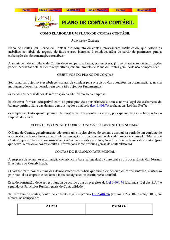 Plano De Contas E Modelo De Balanco Patrimonial Contabilidad