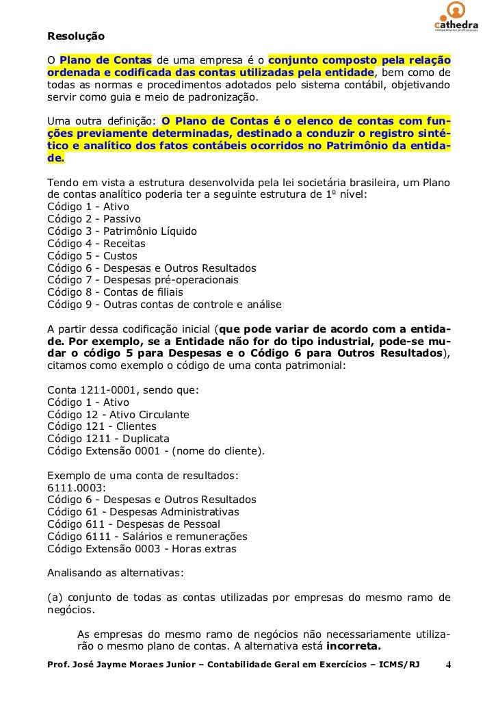 Exercicios Resolvidos Contabilidade Aula 04 Cathedra Icms Rj