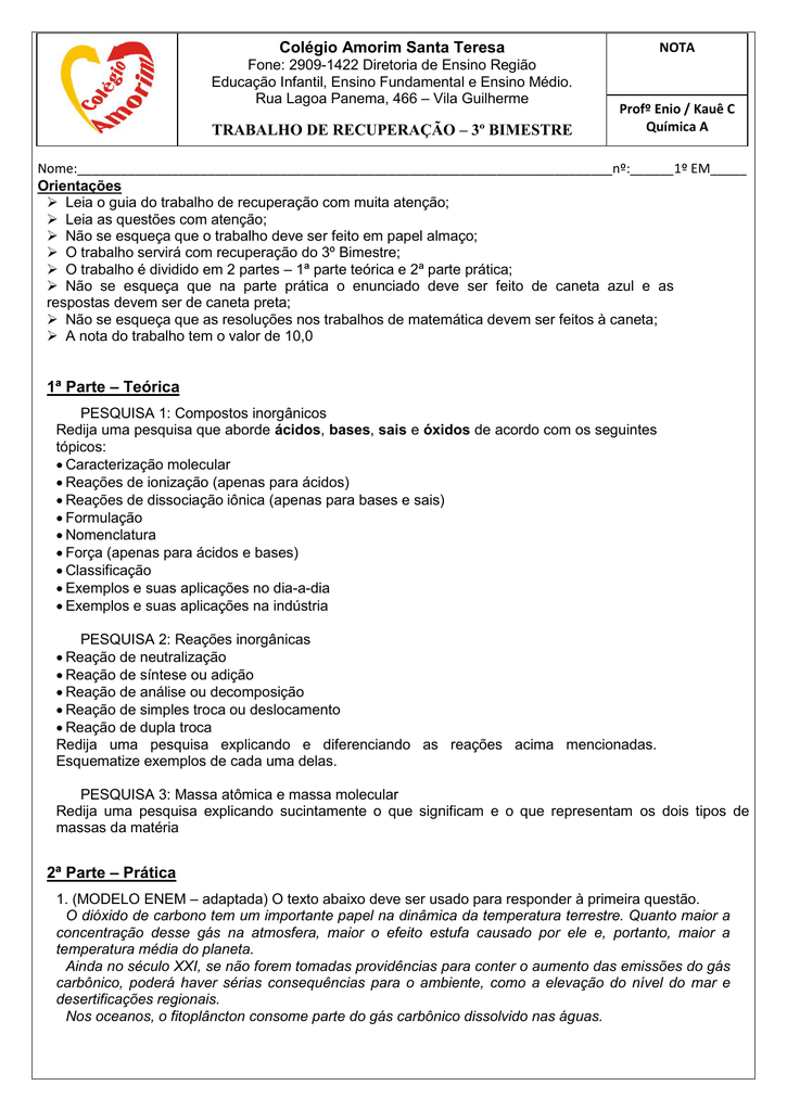 Enem Reacoes Quimicas Prof Julio Cesar Quimica Prof Julio Cesar