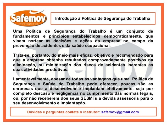 Completo com imagens Exemplo Politica De Segurança Do Trabalho.