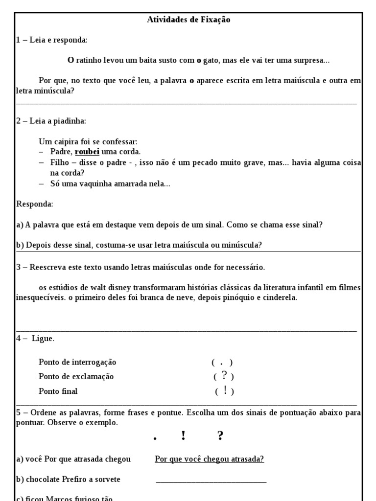 Sinais De Pontuacao Sinais De Pontuacao Atividades Sinais De