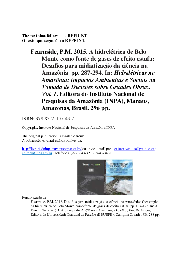 Pdf A Hidreletrica De Belo Monte Como Fonte De Gases De Efeito