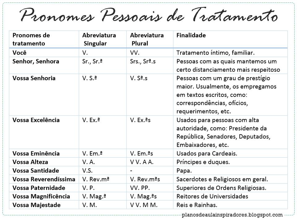 Pronome Pessoal De Caso Reto Obliquo De Tratamento Possessivo