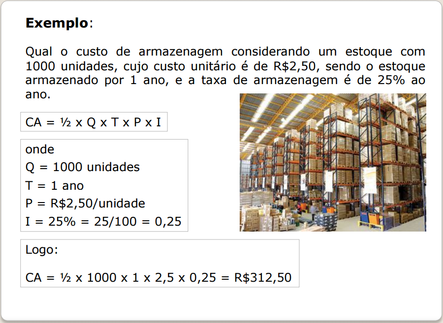 Detalhes de artigos relacionados Exemplo De Calculo De Custo De Armazenagem.