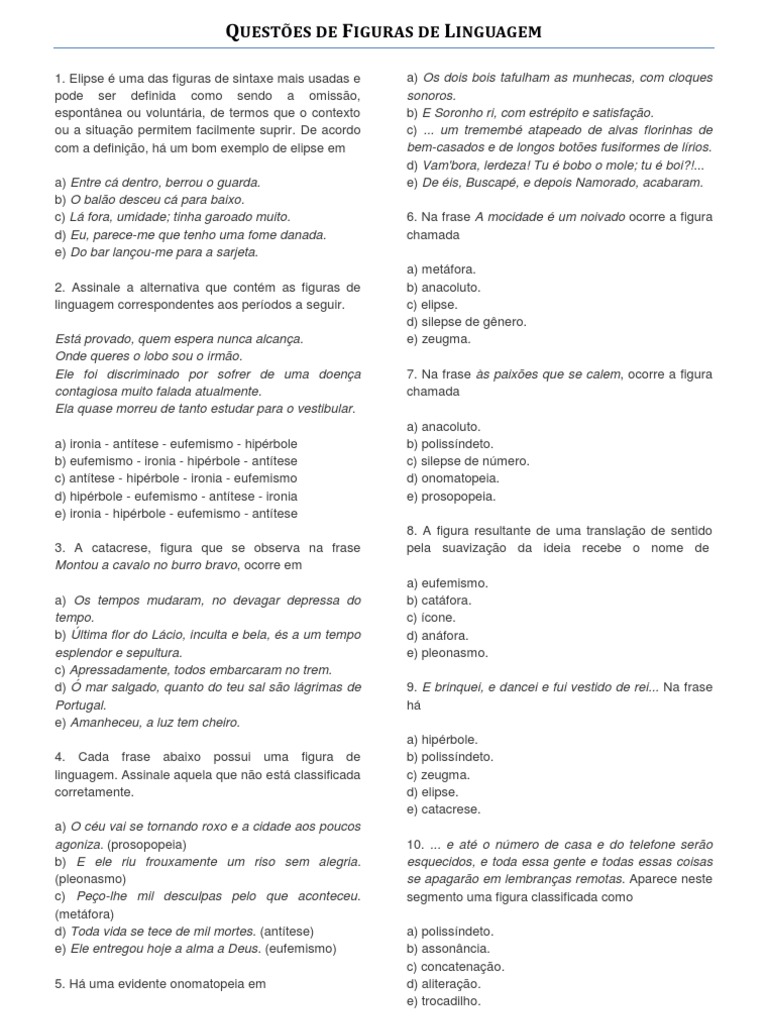 Simulado De Figuras De Linguagem Teste Seus Conhecimentos