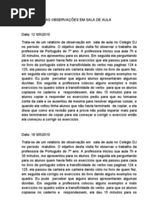 Relatorio Das Observacoes Em Sala De Aula Lazer Crescimento
