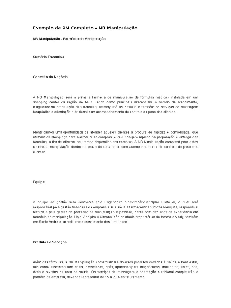 Exemplo De Plano De Negocio Farmaceutico Farmacia