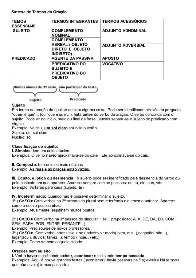 Termos Essenciais Da Oracao Definicoes Exemplos E Exercicios