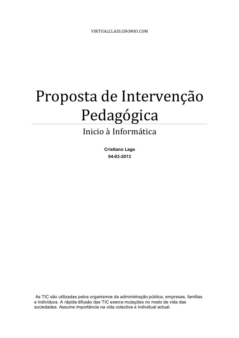 Proposta De Intervencao Pedagogica Pip Cristiano Lage