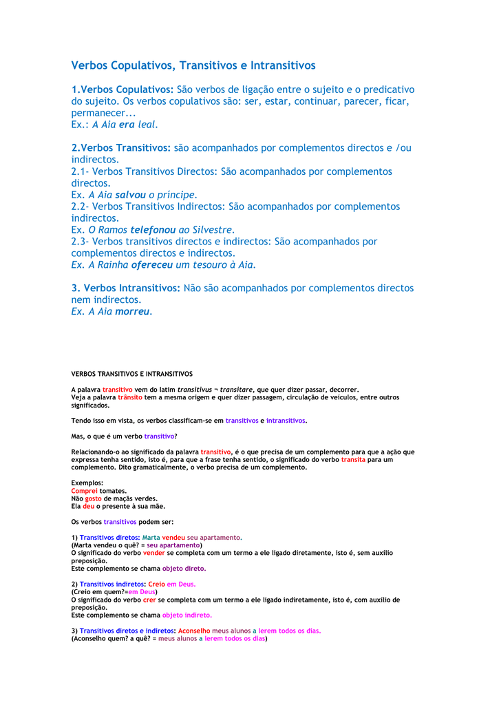 Verbos Transitivos E Intransitivos Trabalhos Escolares