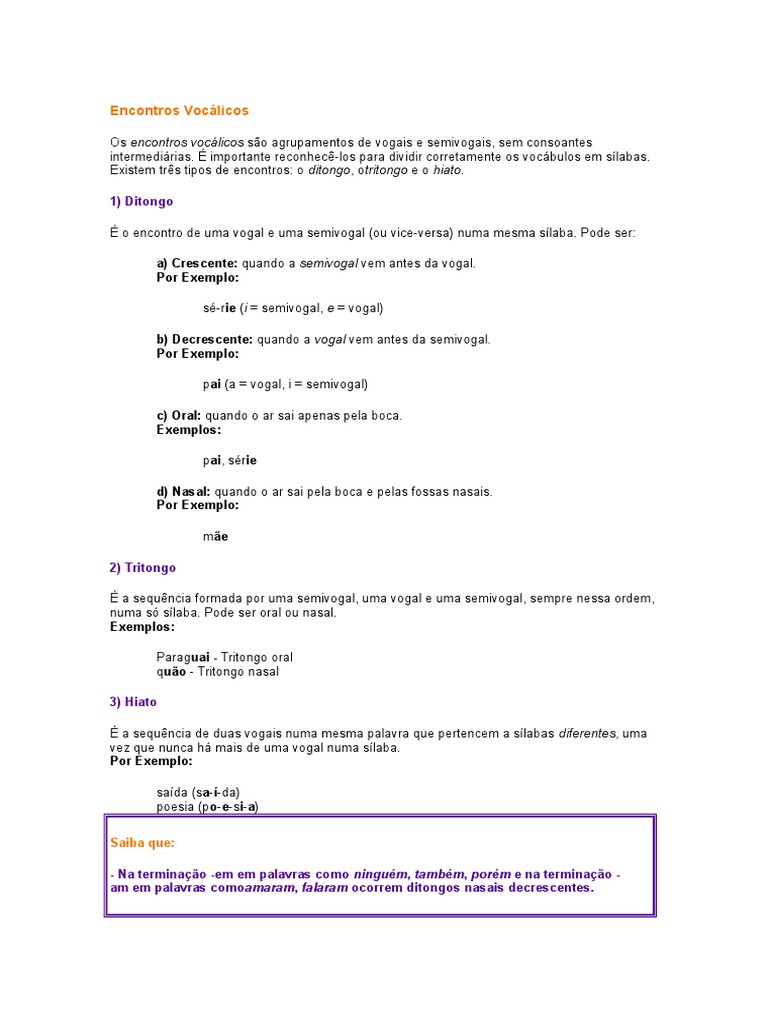 Aula 2 Fonetica Encontros Vocalicos Baixar Pdf De Docero Com Br