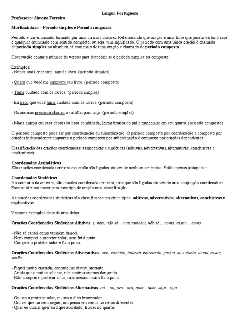 Gramatica E Literatura Periodo Simples E Periodo Composto Exemplos