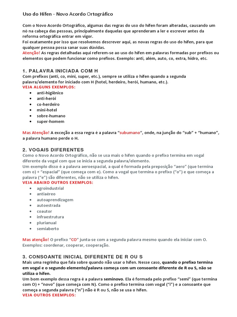 Como E O Uso Do Hifen De Acordo Com As Novas Regras Ortograficas