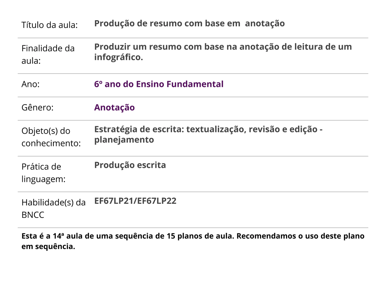 Plano De Aula 6º Ano Lingua Portuguesa Producao De Resumo