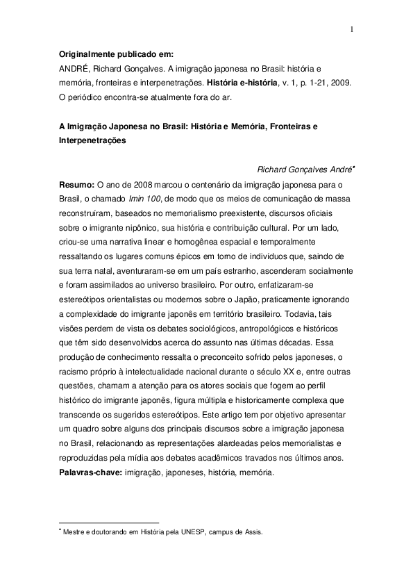 Pdf A Imigracao Japonesa No Brasil Historia E Memoria