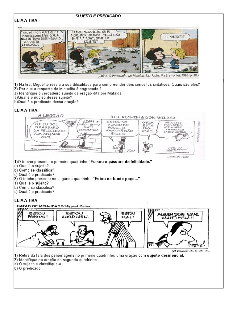 Atividade Sujeito E Predicado Doc Assunto Gramatica