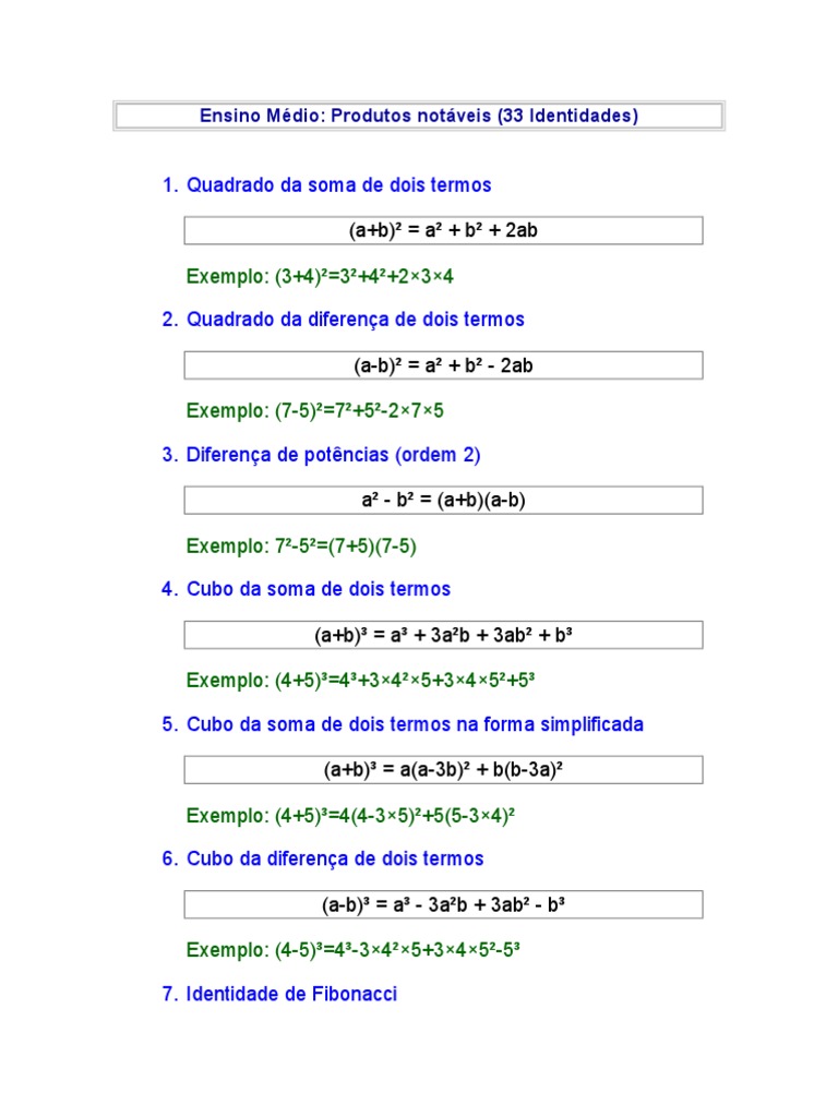Produtos Notaveis Teoria E Exemplos