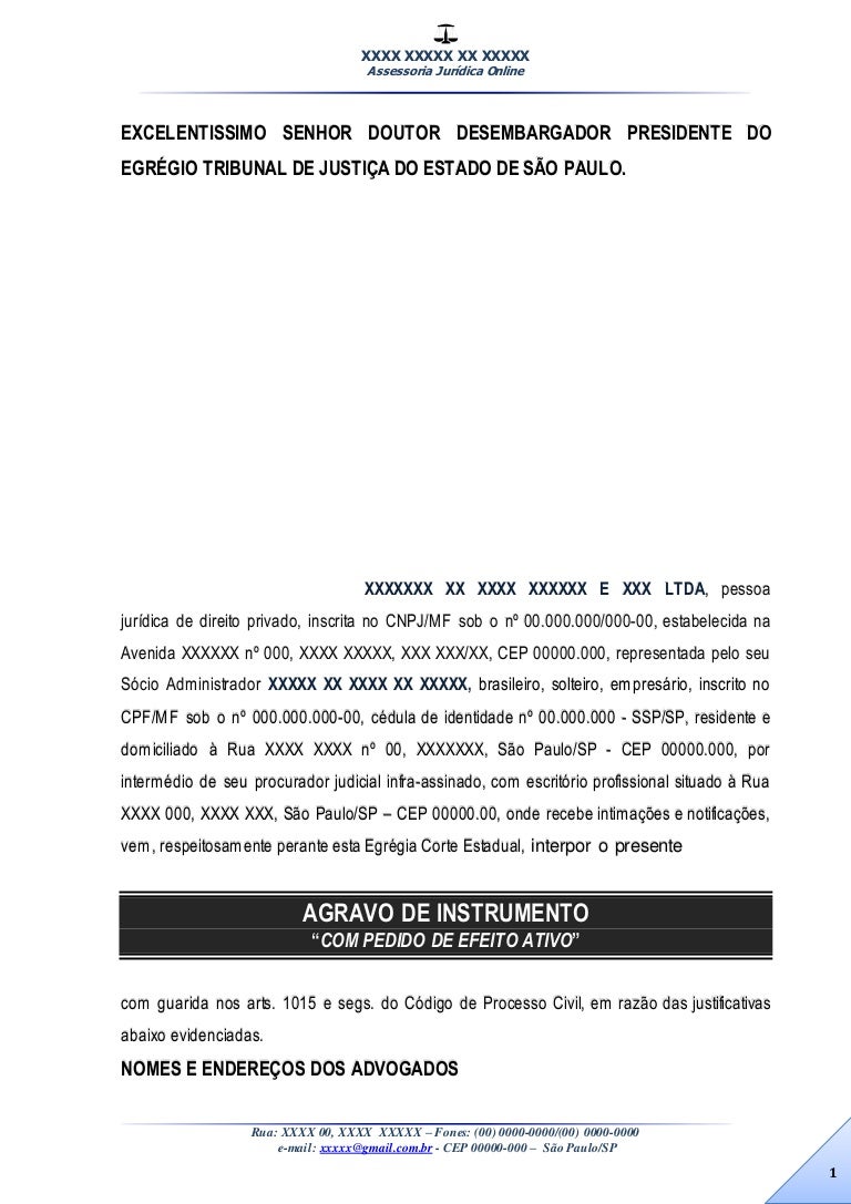 Modelo Agravo De Instrumento Novo Cpc Doc Sentenca Lei Advogado