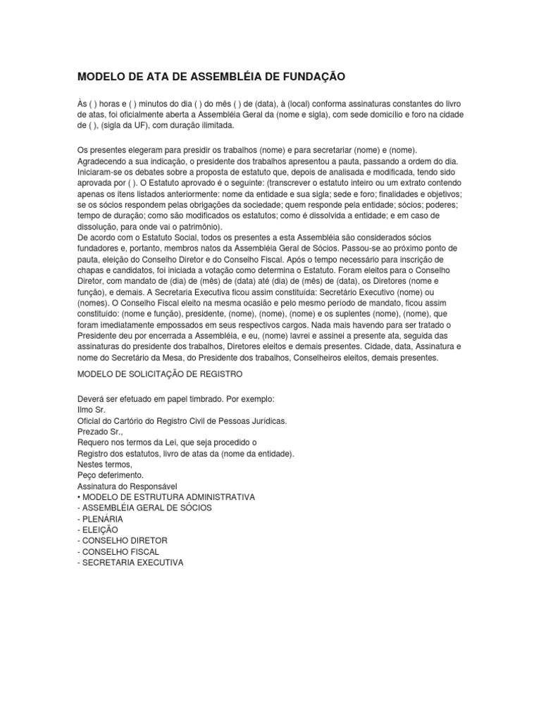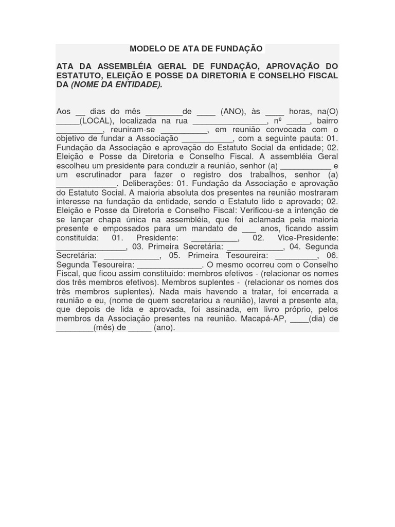 Modelo De Ata De Assembleia De Fundacao Conselho De Seguranca