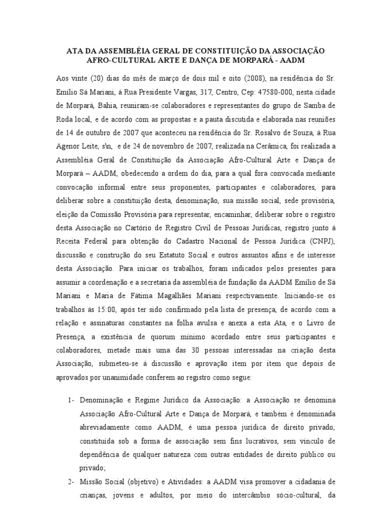 Ata De Criacao Da Aadm Associacao Cultural Arte E