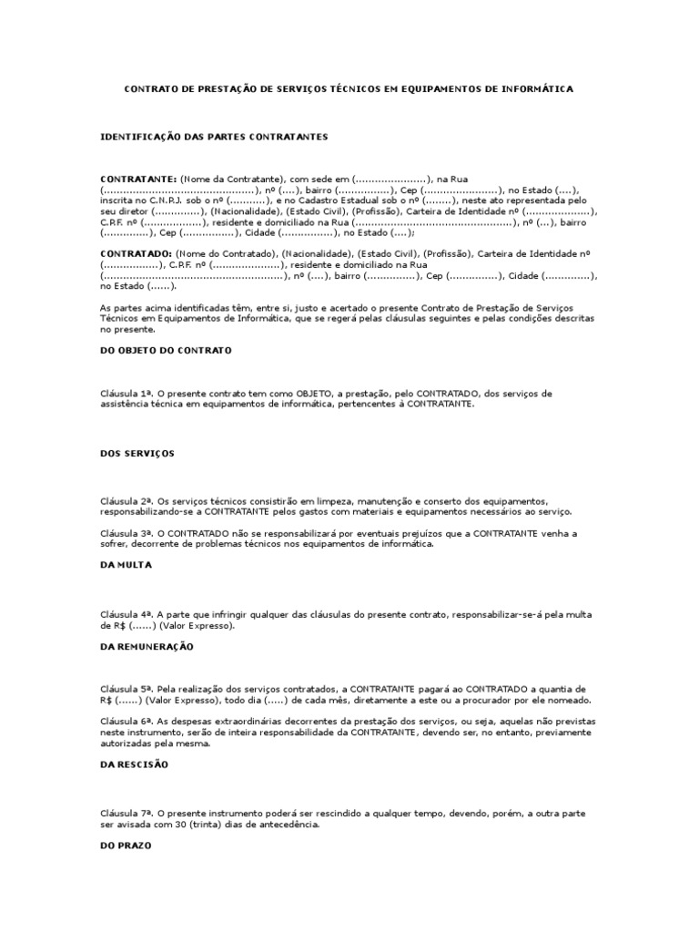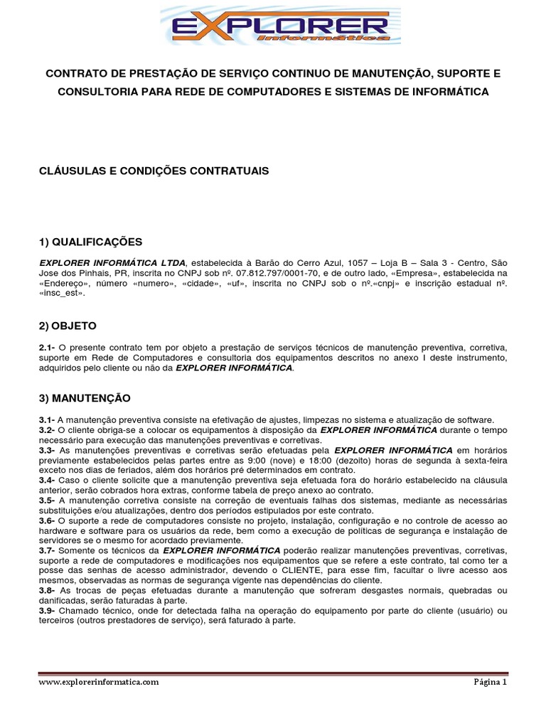 Modelo Contrato Manutencao Computadores Business