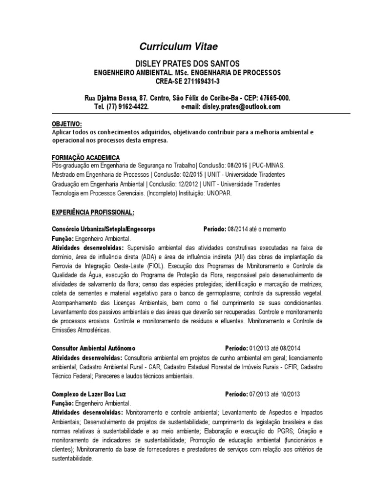 Modelo De Curriculum Gestao De Recursos Ambientais Engenharia