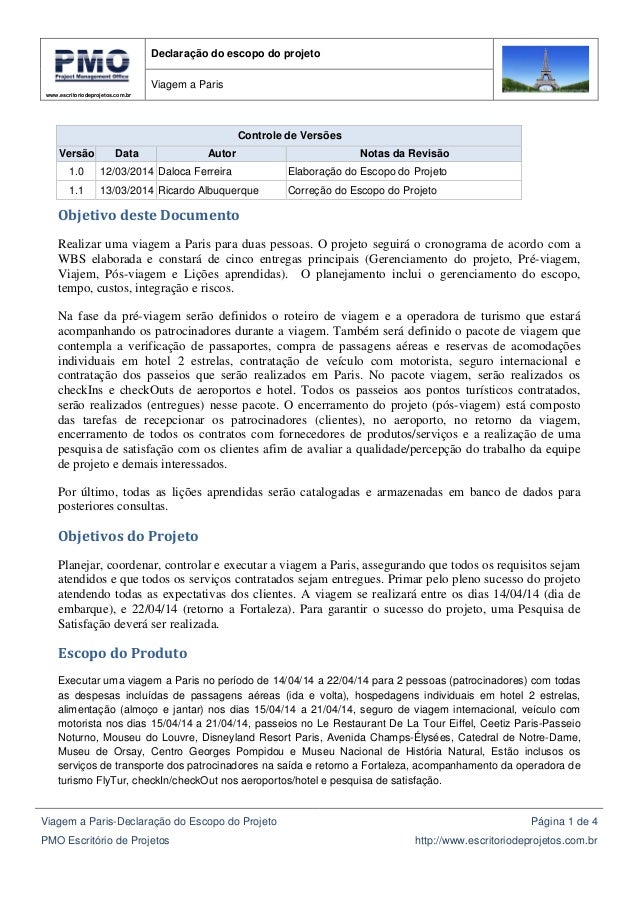 Revisões sobre Exemplo De Escopo De Um Projeto Pronto.