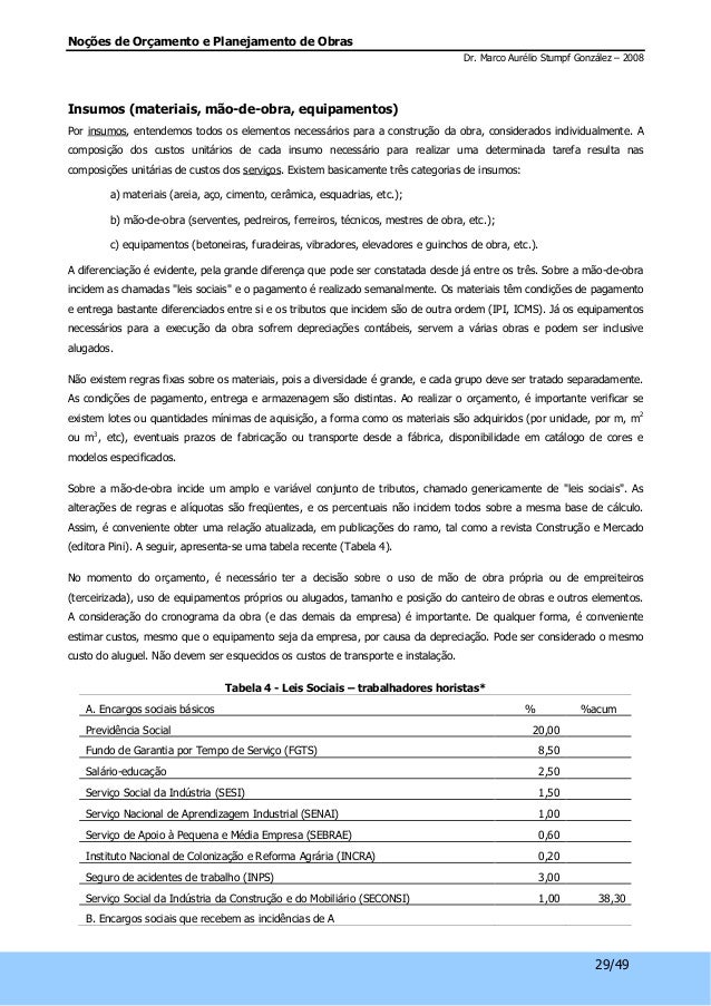 Orcamento Na Construcao Civil Custo Indireto De Mao De Obra