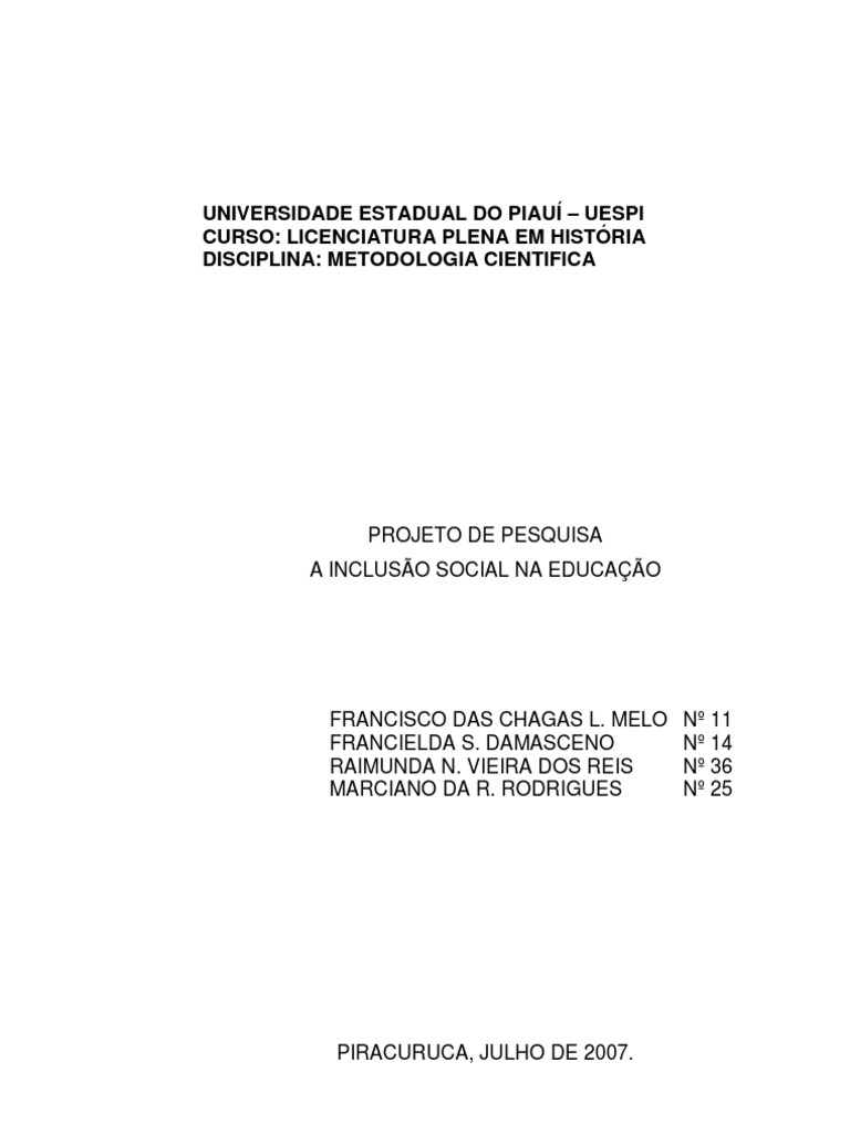 Projeto De Pesquisa Inclusao Social Exclusao Social Deficiencia