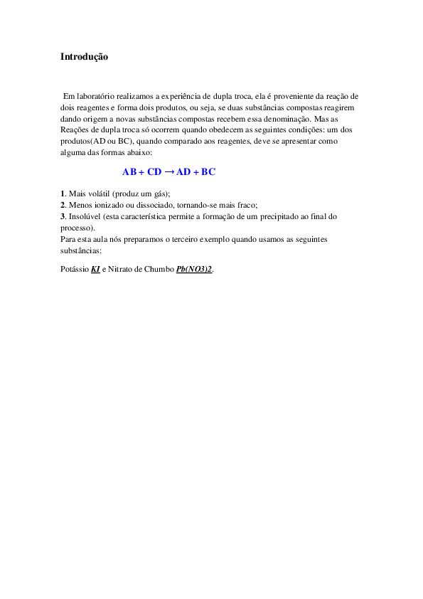 Doc Relatorio De Quimica Dupla Troca Lucas Larocca Academia Edu