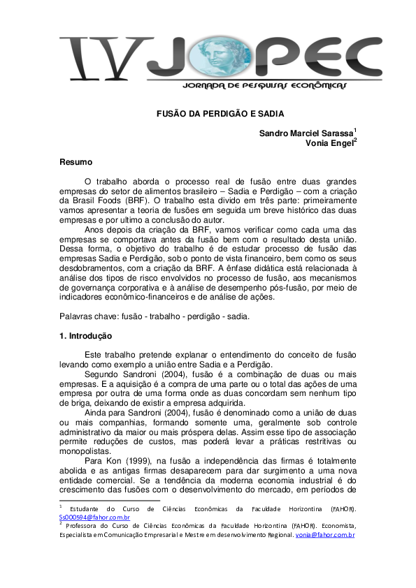 Pdf Fusao Da Perdigao E Sadia Camila Mateus Academia Edu