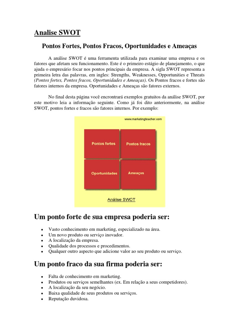 Doc A Analise Swot E Uma Das Ferramentas De Planejamento Mais