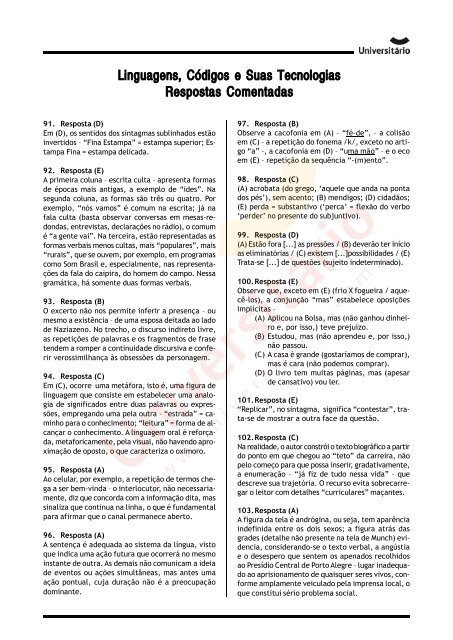 Simulado Enem Linguagens E Matematica Curso Pre Universitario