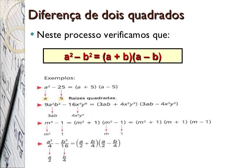 Encontre informações completas sobre Fatoração Da Diferença De Dois Quadrados Exemplos.