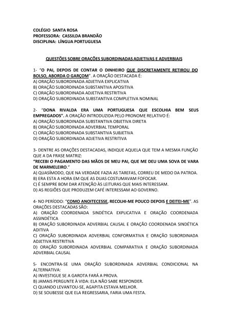 Portal Do Professor As Oracoes Subordinadas Adjetivas Na