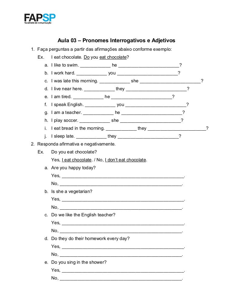 Pronomes Interrogativos E Exercicios Com Pronomes Amigo Pai